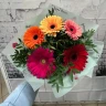 Живой букет сияющих эмоций, который вызывает разнообразие ярких и позитивных ощущений. Герберы - воплощение свежести и радости в каждом пышном цветке. Сочетание разноцветных лепестков создает волшебную гармонию, будто музыка весны. Упаковка подчеркивает его прекрасное содержимое – нежные контрасты, которые приковывают взгляды и пробуждают в душе светлые эмоции. Этот букет — искренний подарок, который наполняет мир вокруг радостью, красотой и положительными вибрациями.